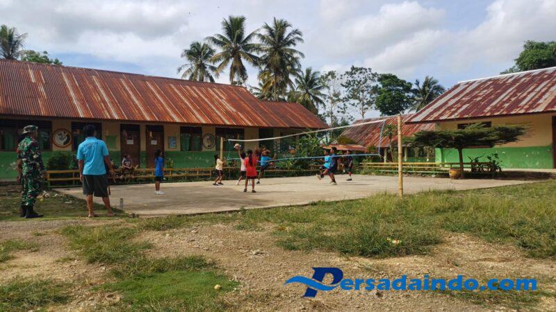 • Babinsa dan Guru Olahraga Latih Anak-Anak Main Voli di Desa Umbu Mamijuk