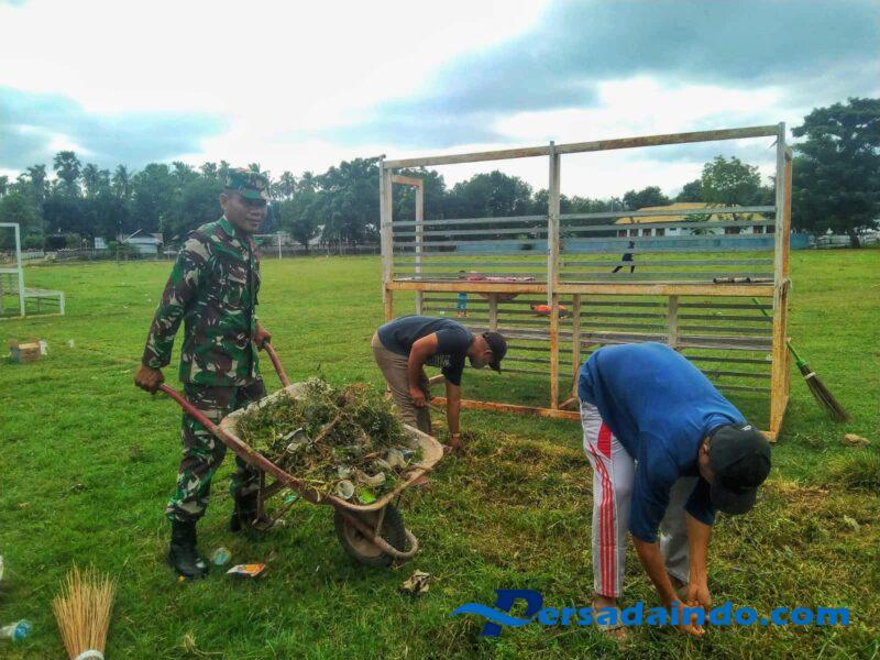 • Babinsa dan Masyarakat Ds. Lanta Bersinergi Pembersihan Lapangan Sepak Bola