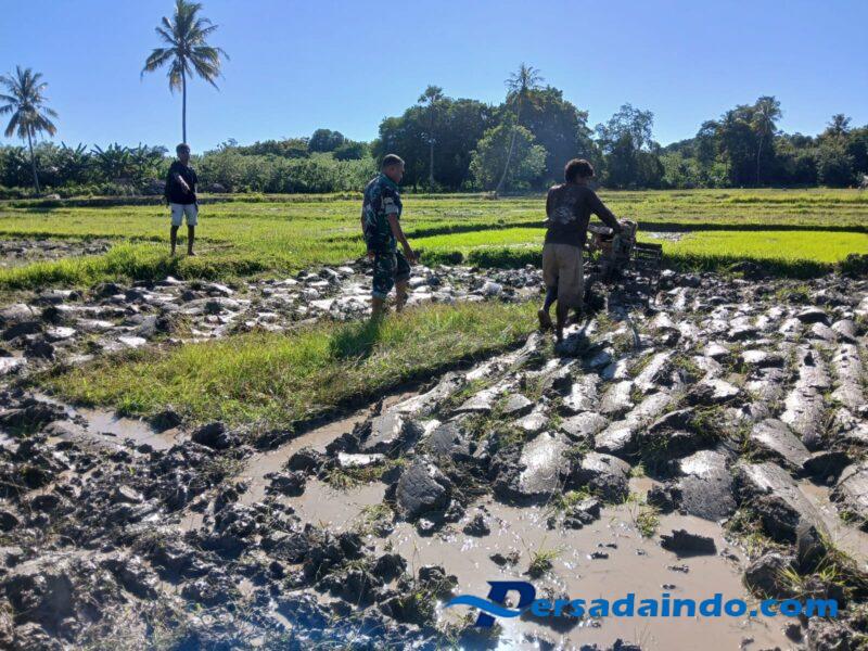 Tidak hanya memegang cangkul dan memandu bajak, Babinsa juga turut memberikan motivasi dan semangat kepada para petani agar tetap tekun mengolah lahan demi hasil panen yang maksimal.