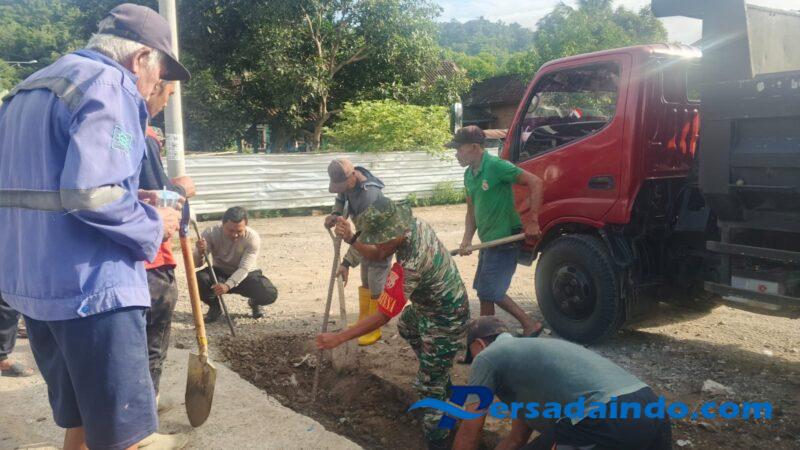 Sumbawa Barat – NTB, Babinsa Desa Moteng, Serda Muhaimin, anggota Koramil 1628-01/Taliwang, memimpin kegiatan gotong royong pembersihan got dan parit saluran air di Dusun Moteng Bawah, Desa Moteng, Kecamatan Brang Rea, Kabupaten Sumbawa Barat, Jumat pagi.