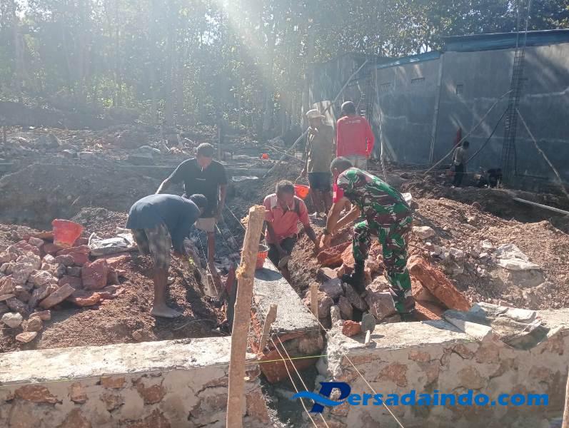 • Babinsa dan Warga Desa Noemuti Bersama-sama Bangun Pondasi Rumah Warga