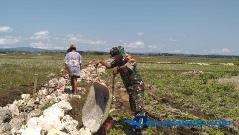 NTT – Sumba Timur. Babinsa Koramil 01/Lewa, Kodim 1601/Sumba Timur Sertu I Nengah melaksanakan gotong royong bersama Warga Masyarakat dalam rangka percepatan Pembuatan Saluran Irigasi untuk mendukung Kemajuan dibidang Pertanian yang bertempat di Desa Persiapan Padanjahamu, Kecamatan Lewa, Kabupaten Sumba Timur, Senin (06/10/2025)