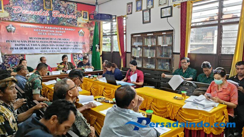 Kegiatan Musdes ini bertujuan untuk menjaring aspirasi dan masukan dari seluruh elemen masyarakat guna menentukan arah kebijakan dan program prioritas pembangunan desa ke depan. Turut hadir dalam kegiatan tersebut Perbekel Desa Demulih beserta perangkatnya, BPD, Babinkamtibmas, pendamping desa, tokoh masyarakat, tokoh adat, dan unsur lembaga desa lainnya.
