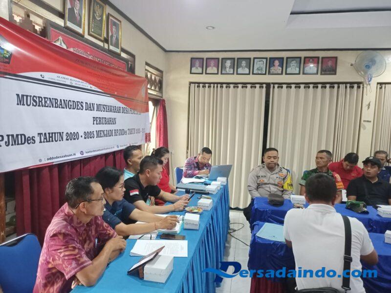 Bangli – Babinsa Desa Abuan, Sertu I Dewa Gede Mertawan, menghadiri rapat Musyawarah Perencanaan Pembangunan Desa (Musrenbangdes) yang digelar di Desa Abuan, Kecamatan Susut, Kabupaten Bangli, untuk membahas penetapan perubahan Rencana Pembangunan Jangka Menengah Desa (RPJMDes) tahun 2020–2025 menjadi RPJMDes 2020–2027, Jumat (23/5/2025 ).
