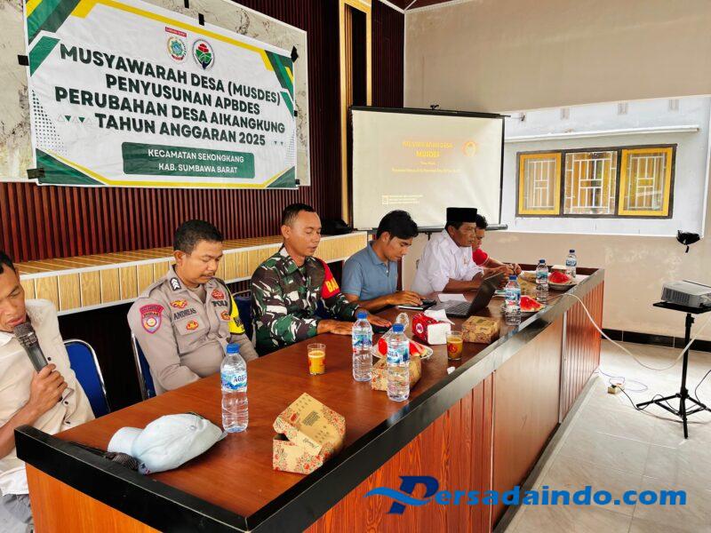 Sumbawa Barat, NTB – Babinsa Desa Aikangkung Koramil 1628-02/Sekongkang, Serda Afriadin menghadiri kegiatan Musyawarah Desa Khusus (Musdesus) dalam rangka penyusunan Anggaran Pendapatan dan Belanja Desa (APBDes) Perubahan Desa Aikangkung Tahun Anggaran 2025. Kegiatan tersebut berlangsung pada Jumat, (12/09/2025), bertempat di Aula Desa Aikangkung, Kecamatan Sekongkang, Kabupaten Sumbawa Barat.