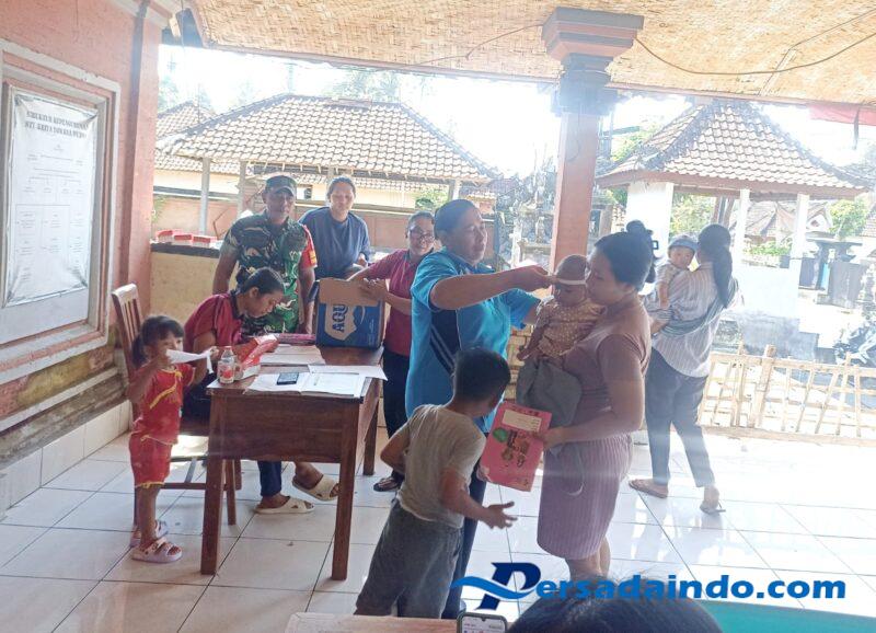 Bangli – Babinsa Desa Bangbang Koramil 1626-03/Tembuku, Pelda Kadek Widiarta, melaksanakan kegiatan pendampingan dan pemantauan Posyandu Balita yang diselenggarakan oleh Puskesmas Pembantu Desa Bangbang bersama kader Posyandu Cempaka Banjar Dinas Bangbang Kangin.