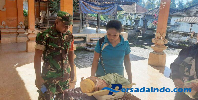 Bangli – Guna mewujudkan balita yang sehat di wilayah binaan Babinsa Desa Bangbang Koramil 03/Tembuku Kodim 1626/Bangli Pelda Kadek Widiarta melaksanakan pendampingan kegiatan Posyandu Balita di Banjar dinas Bangbang Kaja Desa Bangbang, Kecamatan Tembuku, Kabupaten Bangli. Rabu (04/06/25)