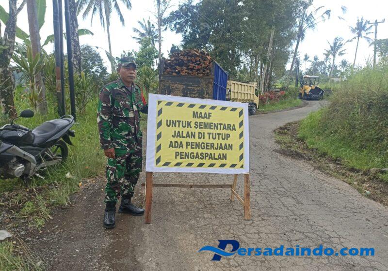 Bangli – Dalam rangka mendukung kelancaran pembangunan infrastruktur jalan di wilayah binaan, Babinsa Desa Bangbang Koramil 1626-03/Tembuku, Pelda Kadek Widiarta, bersama Bhabinkamtibmas melaksanakan pengamanan kegiatan pengaspalan jalan di Desa Bangbang, Kecamatan Tembuku, Kabupaten Bangli, Senin (3/11/2025).