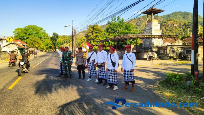 Perjalanan dari Pura Desa menuju Pura Taman Beji menjadi titik fokus pengamanan. Mengingat jalur yang dilalui merupakan area padat lalu lintas, peran pengamanan menjadi sangat krusial. Babinsa Desa Banyupoh, Serma Putu Sudiarsana, bersama Bhabinkamtibmas Aipda Ketut Arsana, sigap mengambil alih koordinasi di lapangan. Mereka tidak bekerja sendirian, melainkan berkolaborasi erat dengan 20 orang Pecalang Desa Adat Banyupoh.