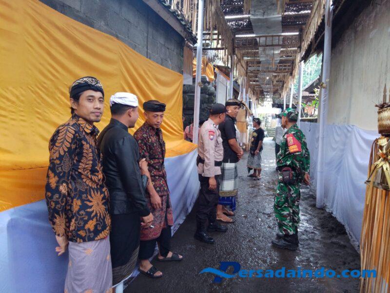 Babinsa Desa Duda Utara Koramil 1623-06/Selat Peltu I Kadek Suadnyana bersinergi melaksanakan pengamanan upacara keagamaan (Karya Nubung Daging, Ngenteg Linggih) Pura Dadya Kimantri Tutuan Desa Adat Geriana Kauh, Desa Duda Utara, Kec.Selat, Kab.Karangasem, pada Kamis (08/05/25).