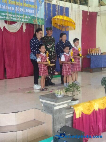 Dalam sambutannya, Serma I Putu Subawa Negara menyampaikan apresiasi kepada pihak sekolah, orang tua, serta para siswa yang telah menunjukkan semangat dan kreativitas melalui penampilan seni dan prestasi belajar. “Kita semua memiliki tanggung jawab membentuk generasi penerus yang tangguh, berkarakter, dan cinta tanah air sejak usia dini,” ujarnya.