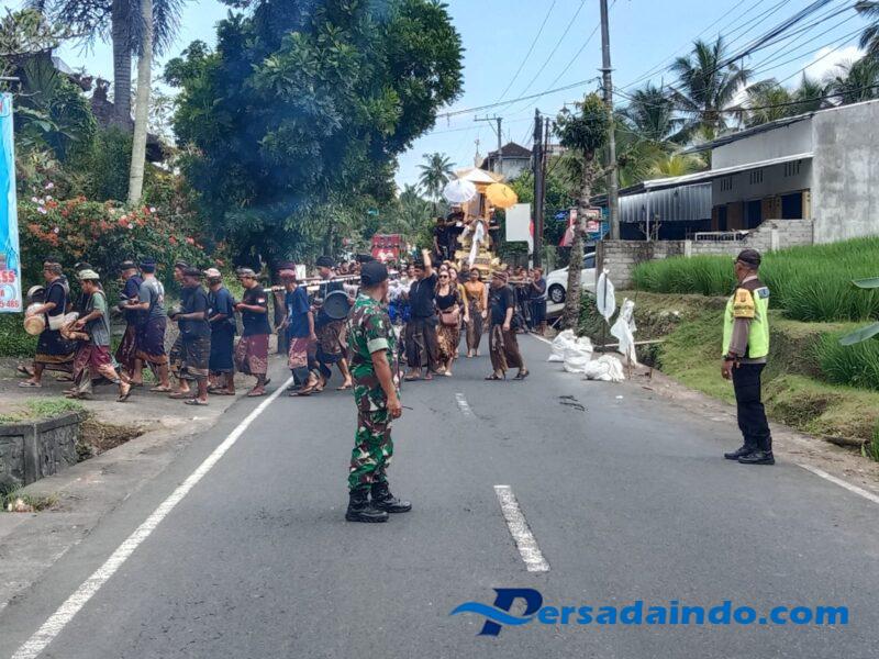 Tabanan – Babinsa Desa Jegu, Koramil 1619-08/Penebel Serka I Made Duduk, turut serta melaksanakan pengamanan jalannya upacara ngaben salah satu warga Desa Jegu, Kecamatan Penebel, Sabtu (9/8/2025). Kegiatan ini bertujuan untuk memastikan prosesi adat berjalan dengan tertib, aman, dan lancar.