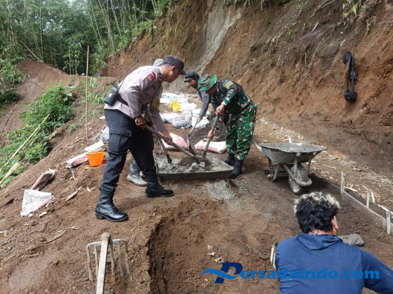 Bangli – Wujud nyata dukungan TNI terhadap pembangunan infrastruktur desa, Babinsa Desa Kayubihi, Koramil 01/Bangli, Kodim 1626/Bangli, Koptu Rudi Romadon, bersama Bhabinkamtibmas Desa Kayubihi, melaksanakan pemantauan sekaligus membantu langsung proses pembangunan jalan rabat beton yang menghubungkan Banjar Bangklet menuju Banjar Pucangan, Desa Kayubihi, Kecamatan/Kabupaten Bangli. Kamis (31/07/2025).