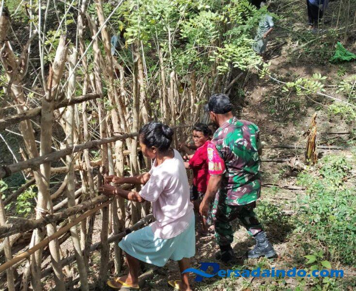 • Babinsa Desa Kuaken Bersama Warga Bangun Pagar untuk Lindungi Tanaman dari Ternak