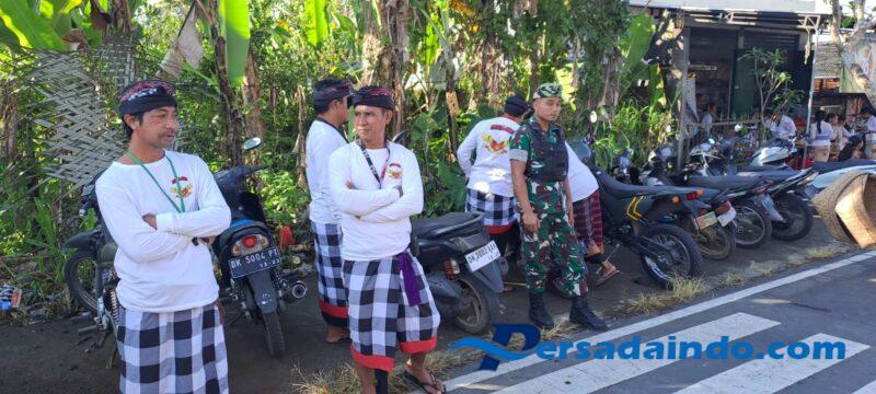 Mereka bekerja sama dengan aparat keamanan lainnya seperti Bhabinkamtibmas dan Pecalang Desa Adat untuk memastikan kegiatan berlangsung aman dan lancar.
