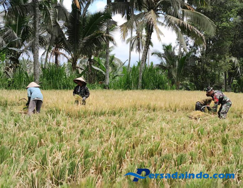 • Babinsa Desa Pangsan Bantu Petani Panen Padi, Wujud Kepedulian terhadap Warga