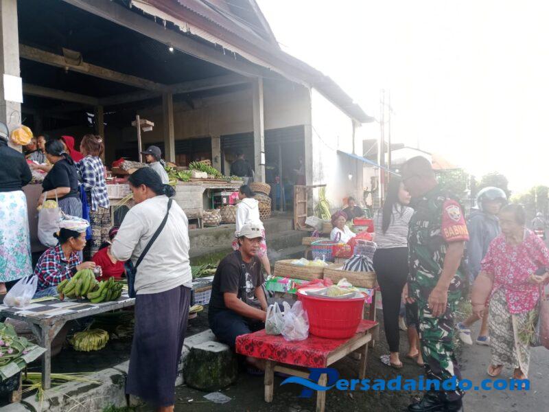 Bangli – Babinsa Desa Peninjoan Koramil 1626-03/Tembuku, Serka I Made Suarnika, melaksanakan kegiatan Komunikasi Sosial (Komsos) bersama para pedagang dan pembeli jelang Hari Raya Galungan di Pasar Peninjoan, Kecamatan Tembuku, Kabupaten Bangli, Selasa (18/11/2025).