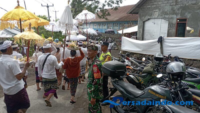 Persadaindo.com – Bangli – Personel Kodim 1626/Bangli yang bertugas sebagai Babinsa di Desa Serai melakukan Pengawalan dan Pengamanan Ide Sesuunan Dadia Kayu Selem Desa Serai Lunga (Menuju) ke Pura Kawitan Warga Kayuselem Songan. Pengamanan dilakukan secara sinergis bersama Bhabinkamtibmas dan Pecalang Desa Adat Serai. Kamis (17/04/25)