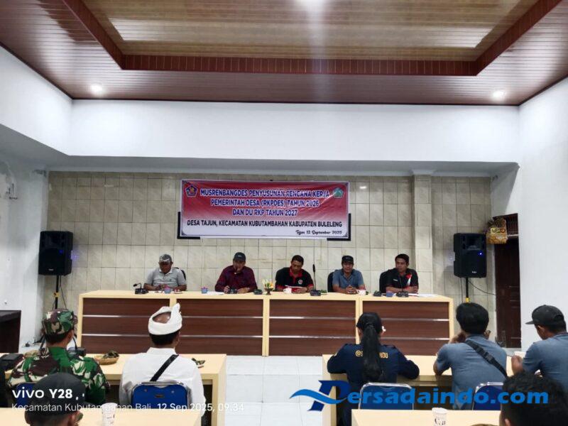 Kubutambahan: – Tajun -jumat 12/9/ 2025, pukul 12.00 WITA, bertempat di Aula Kantor Perbekel Desa Tajun, Kecamatan Kubutambahan, Kabupaten Buleleng, Babinsa Desa Tajun Serda Komang Agus Adi Antara dan Bhabinkamtibmas Desa Tajun menghadiri kegiatan Musyawarah Perencanaan Pembangunan Desa (Musrenbang Desa) dalam rangka penyusunan Rencana Kerja Pemerintah (RKPDES) Desa tahun anggaran 2026.
