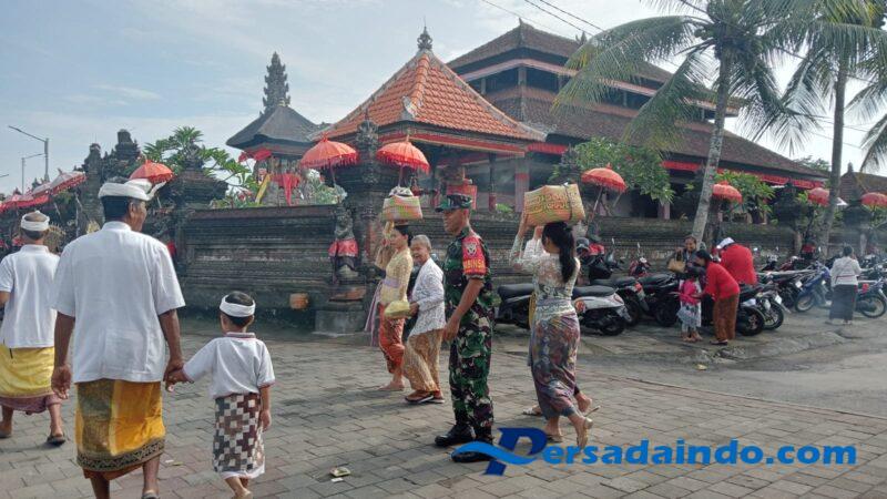 Dengan penuh tanggung jawab, Babinsa Peltu I Wayan Sujana bersama Bhabinkamtibmas Aipda Anak Agung Lastiawan dan Pecalang Adat setempat melaksanakan pemantauan sekaligus pengamanan kegiatan persembahyangan. Kehadiran Babinsa di tengah masyarakat mendapat apresiasi positif karena memberikan rasa aman dan nyaman bagi para pemedek yang mengikuti rangkaian upacara.