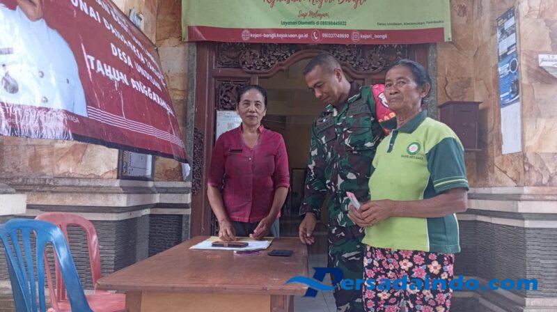 Bangli – Dalam rangka mendukung program pemerintah serta memastikan bantuan tepat sasaran, Babinsa Desa Undisan Koramil 1626-03/Tembuku, Serda I Wayan Budiarta, melaksanakan pemantauan dan pendampingan penyaluran BLT-DD (Bantuan Langsung Tunai Dana Desa) tahap IX bulan September 2025. Bantuan yang bersumber dari Dana Desa tersebut disalurkan kepada warga Desa Undisan yang kurang mampu serta warga yang mengalami sakit menahun. Kegiatan berlangsung di Kantor Desa Undisan, Kecamatan Tembuku, Kabupaten Bangli, Rabu (03/09/2025).