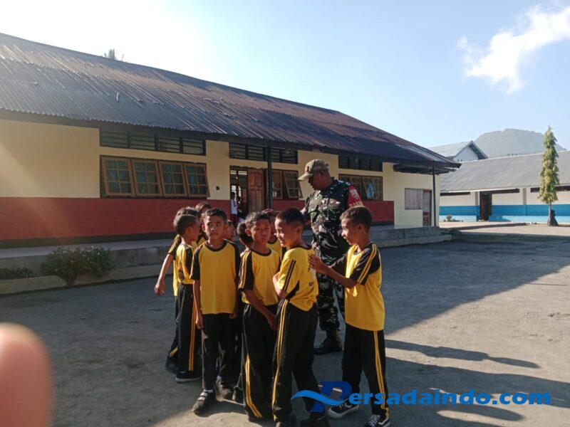 Ende, Babinsa Ramil 1602-01/Ende, Serda Ridwan Ali, melaksanakan kegiatan Komunikasi Sosial (Komsos) dan monitoring wilayah di Sekolah Dasar Kristen (SDK) Ende 6, Kelurahan Kotaraja, Kecamatan Ende Utara, Kabupaten Ende, Rabu (13/08/2025).