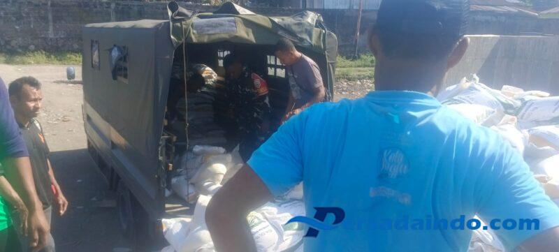 Ende, Babinsa Koramil 1602-01/Ende melakukan pengawasan dan pengamanan penyaluran Bantuan Pangan Cadangan Beras Pemerintah (CBP) yang berlangsung di pelabuhan Bita Beach, Kelurahan Mautapaga, Kecamatan Ende Timur, Kabupaten Ende.