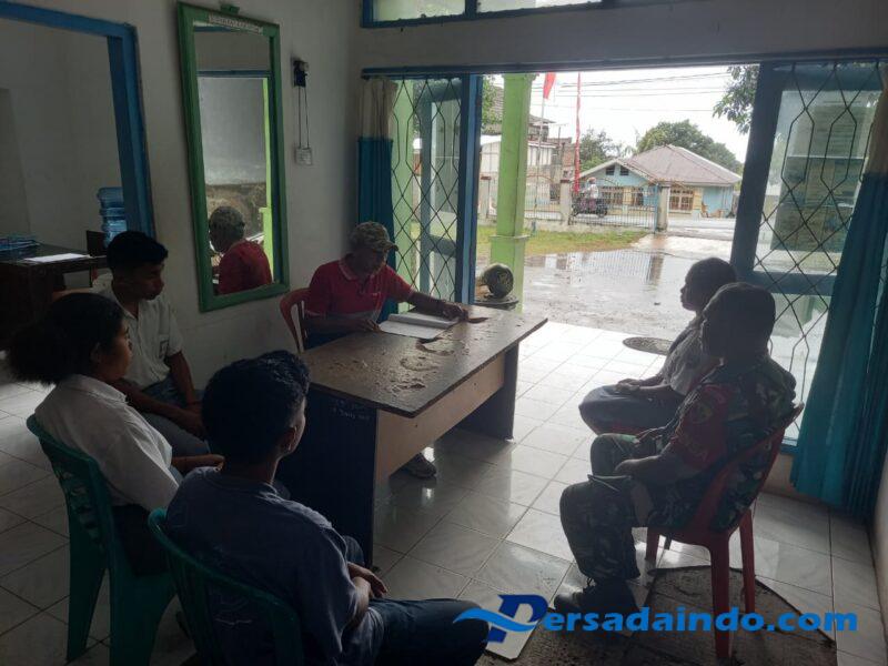 Ende, Babinsa Koramil 1602-01/Ende, Sertu Ersan, melaksanakan kegiatan Komunikasi Sosial (Komsos) dan Pengamanan Wilayah (Pamwil) bersama Lurah Kota Ratu dan siswa magang di aula Kantor Lurah Kota Ratu, Kecamatan Ende Utara, Kabupaten Ende, pada Senin siang (08/09/2025).
