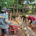 Membantu pengerjaan saluran irigasi yang mendukung kebutuhan pertanian desa.