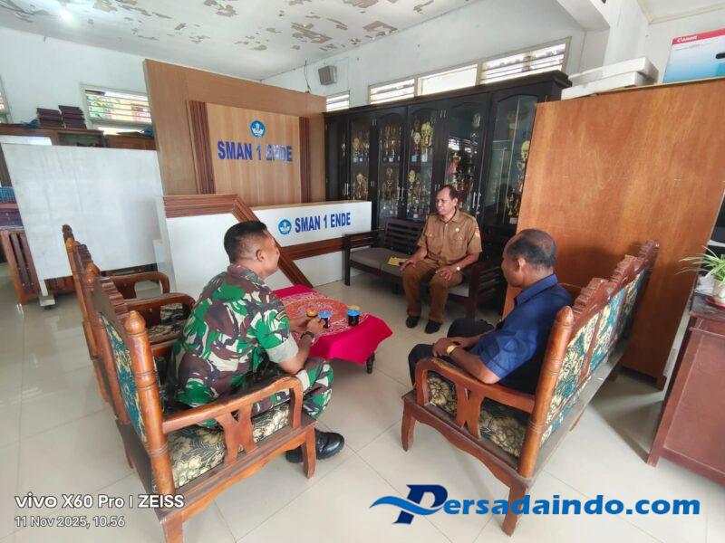 Ende, – Babinsa Koramil 1602-01/Ende, Serma Nasrudin Latif, melaksanakan kegiatan pemantauan wilayah (Pamwil) dan komunikasi sosial (Komsos) di SMAN 1 Ende, yang berlokasi di Jalan Wirajaya, Kelurahan Onekore, Kecamatan Ende Tengah, Kabupaten Ende. Kegiatan berlangsung sejak pukul 10.00 Wita hingga selesai.