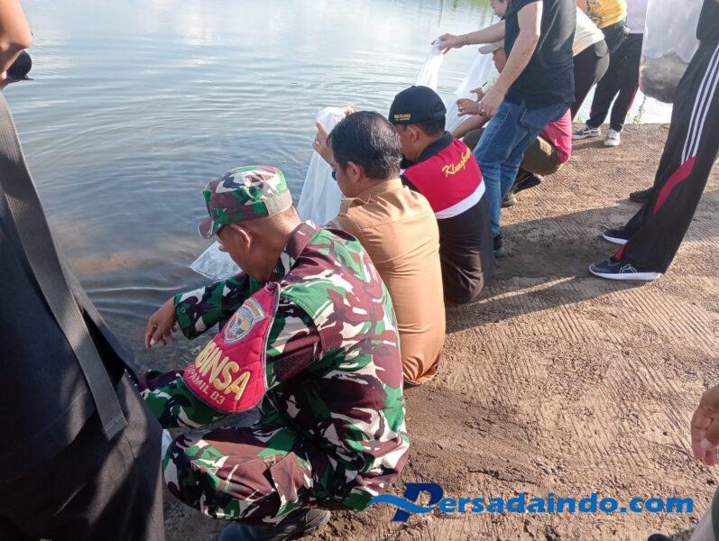 Klungkung,- Ribuan bibit ikan jenis nila ditebar Bupati Klungkung I Made satria bersama berbagai pihak di Embung Tukad Unda Desa Gunaksa, Kecamatan Dawan, Senin ( 16/06/25 ).