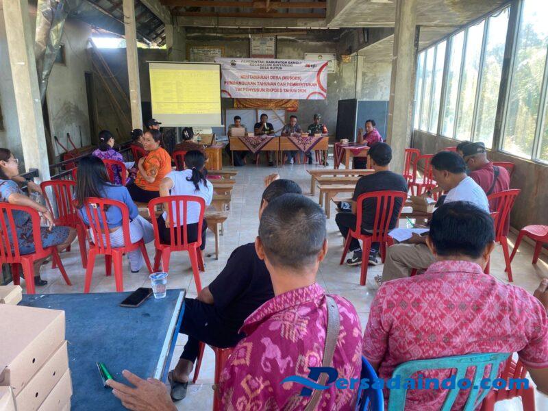 Bangli – Babinsa Desa Kutuh, Serda Kadek Suardi, menghadiri kegiatan Musyawarah Desa (Musdes) yang diselenggarakan di Wantilan Kantor Desa Kutuh pada hari Selasa, 17 Juni 2025 pukul 09.30 WITA hingga selesai. Kegiatan ini bertujuan untuk menyusun Rencana Kerja Pemerintah Desa (RKPDes) Tahun Anggaran 2026 dan membentuk tim penyusun RKPDes.