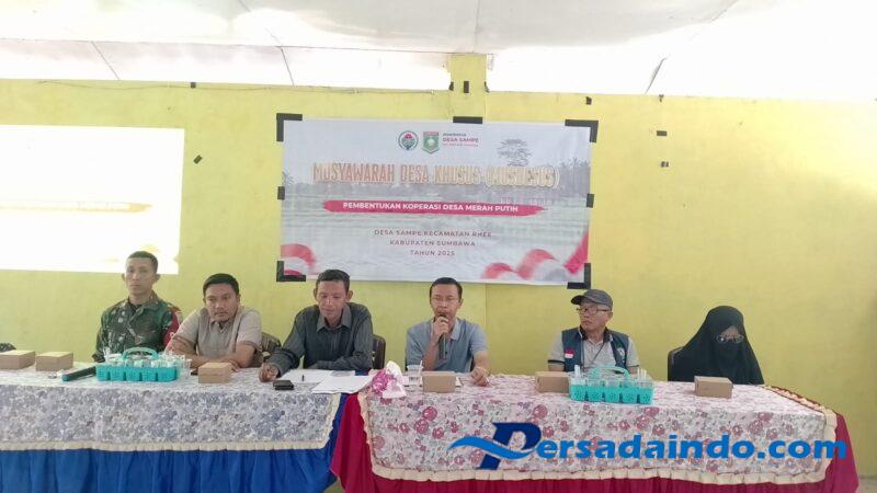 ‎NTB — Sumbawa, Dalam rangka mendukung percepatan pembentukan Koperasi Merah Putih sebagai bagian dari program strategis nasional pemberdayaan ekonomi rakyat, Babinsa Desa Sampe Koramil 1607-09/Utan, Serda Asturiyanto, menghadiri Musyawarah Desa Khusus (Musdesus) yang dilaksanakan di Aula Kantor Desa Sampe, Kecamatan Rhee, Kabupaten Sumbawa, pada Jumat (2/5/2025).