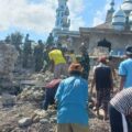 NTT — ALOR —, Anggota TNI dari Koramil 1622-01/Kalabahi bersama masyarakat melaksanakan karya bakti renovasi penembokan abrasi pantai di Mas...