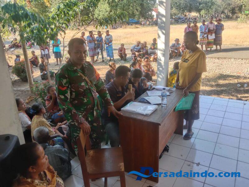 NTT-KUPANG, – Babinsa Koramil 1604-03/Naikliu, Kopka Immanuel Banoet menghadiri sekaligus memantau penyaluran bantuan sosial triwulan keempat untuk periode Oktober hingga Desember yang dilaksanakan di Aula Kantor Camat Amfoang Barat Daya, Kabupaten Kupang. Penyaluran bantuan ini menyasar empat desa, yakni Desa Manubelon, Bioba Baru, Nefoneut, dan Letkole dengan total penerima sebanyak 418 Kepala Keluarga. Kegiatan berlangsung dengan tertib dan melibatkan berbagai unsur terkait. Kamis (27/11/2025).
