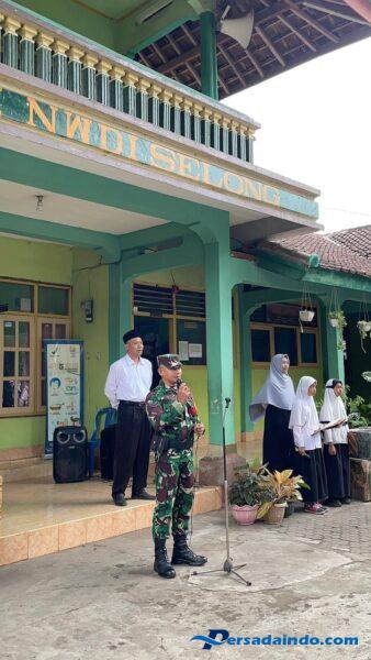 ‎Selong, Lombok Timur — Babinsa Kelurahan Selong, Sertu Idham Khalik, melaksanakan tugas sebagai pembina Upacara Bendera di MI NW Selong yang berlokasi di Lingkungan Karang Sukun, Kelurahan Selong, Kecamatan Selong, Kabupaten Lombok Timur. Senin(24/11/2025).