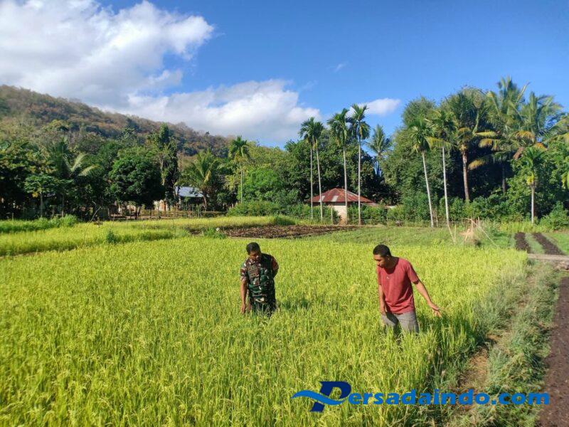 Alor – Babinsa Desa Hulnani, Kecamatan Alor Barat Laut, Kabupaten Alor, Sertu Muhajir Moka, pada Jumat (12/9/2025) pukul 07.30 WITA melaksanakan kegiatan pemantauan wilayah sekaligus membantu kelompok tani Te’maeh membersihkan lahan sawah padi yang sudah ditanami di RT 001/RW 001 Dusun I Desa Aimoli.