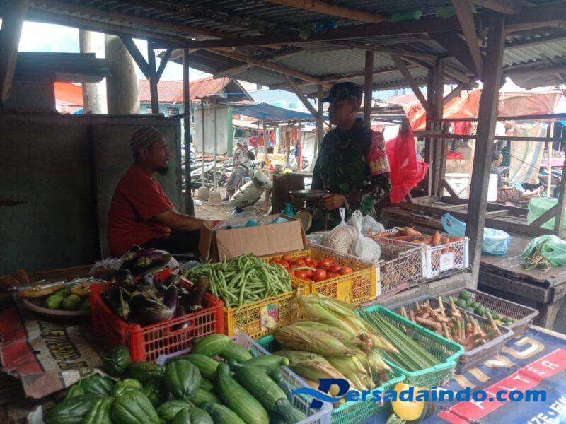 Ende, — Babinsa Koramil 1602-02/Wolowaru, Sertu Lukman, melaksanakan kegiatan Komunikasi Sosial (Komsos) dan Pengamanan Wilayah (Pamwil) di Pasar Moni, Desa Koanara, Kecamatan Kelimutu, Kabupaten Ende, Kamis (6/11/2025).