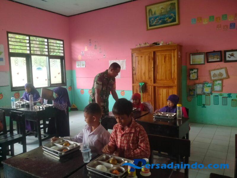 Kegiatan ini merupakan bagian dari program pemerintah dalam meningkatkan asupan gizi anak usia sekolah agar tumbuh sehat dan cerdas. Pada kesempatan tersebut, Serda Yakub turut berinteraksi langsung dengan para siswa serta membantu memastikan pelaksanaan kegiatan berjalan dengan tertib dan lancar.
