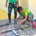 Haumeniana – Prajurit Satgas Pamtas RI-RDTL Sektor Barat Yonarhanud 2 Kostrad Pos Haumeniana mengadakan gotong royong pengecoran atap Gere...
