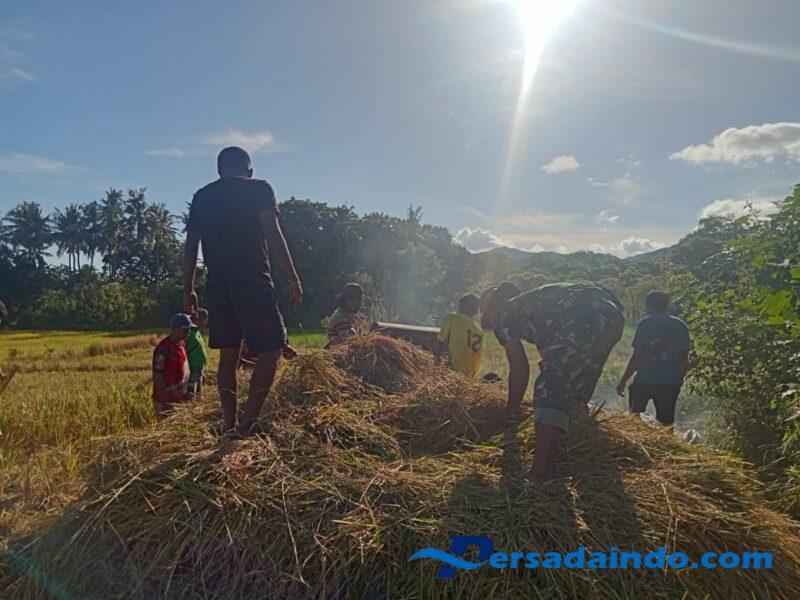 Dalam kegiatan tersebut, Sertu Ferdinan turut serta bersama warga di sawah membantu proses perontokan padi. Kegiatan ini merupakan bagian dari upaya pendampingan TNI kepada para petani guna mendukung program swasembada pangan yang dicanangkan pemerintah.