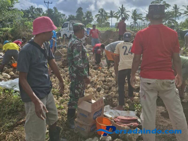 • Babinsa Katikutana Bersama Warga Gotong Royong Bangun Pondasi Rumah