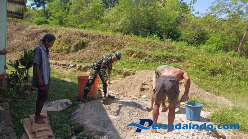 SUMBA TENGAH — Babinsa Koramil 03/Katikutana Kodim 1613/Sumba Barat Kopda I Komang Setiana bersama warga masyarakat melaksanakan gotong royong membangun bak penampung air di Desa Umbu Jodu, Kecamatan Umbu Ratu Nggay Barat, Kabupaten Sumba Tengah, Senin (03/11/2025).