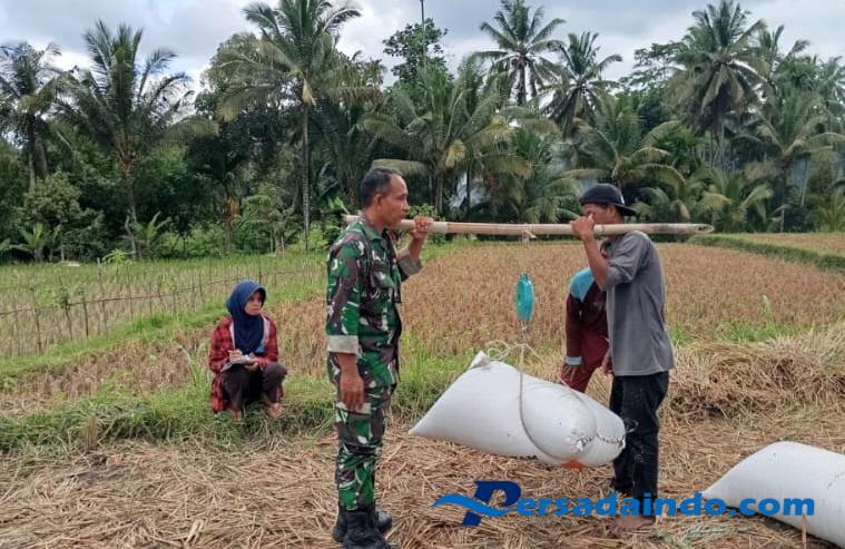 Kegiatan ini merupakan bagian dari upaya mendukung program ketahanan pangan nasional, di mana Babinsa turut terlibat langsung bersama para petani untuk memastikan proses panen dan penyaluran gabah berjalan lancar. Panen kali ini dilakukan di lahan milik Amak Adi dengan luas 15 are, yang menghasilkan sekitar 835 kilogram gabah.