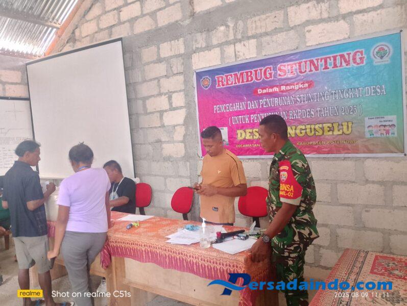 Rote Ndao – Sabtu (9/8/2025) Bertempat di Kantor Desa Lengguselu, Kecamatan Rote Selatan Kabupaten Rote Ndao.Babinsa Sertu Dino Ismail bersama Perangkat desa membantu penyaluran pembagian bantuan Pangan Tahun 2025.