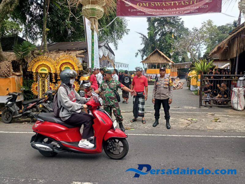Babinsa Peltu I B Didi Kesuma menyampaikan bahwa kehadiran TNI bersama unsur keamanan lainnya merupakan bentuk dukungan terhadap kelancaran pelaksanaan tradisi adat, sekaligus memberikan rasa aman dan nyaman kepada masyarakat yang hadir maupun pengguna jalan di sekitar lokasi kegiatan.