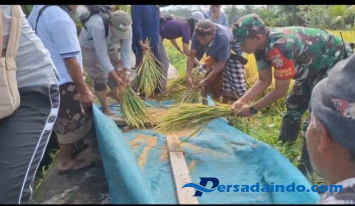 Gianyar – Tegallalang, Jumat (31/10/2025) Dalam rangka mendukung program pemerintah menuju swasembada pangan nasional, Babinsa Desa Keliki Koramil 1616-06/Tegallalang Sertu Dewa Made Sudiarta turut hadir dan berperan aktif dalam kegiatan “Gerakan Panen Padi Bersama” yang dilaksanakan di Subak Tain Kambing, Desa Adat Keliki, Kecamatan Tegallalang, Kabupaten Gianyar.