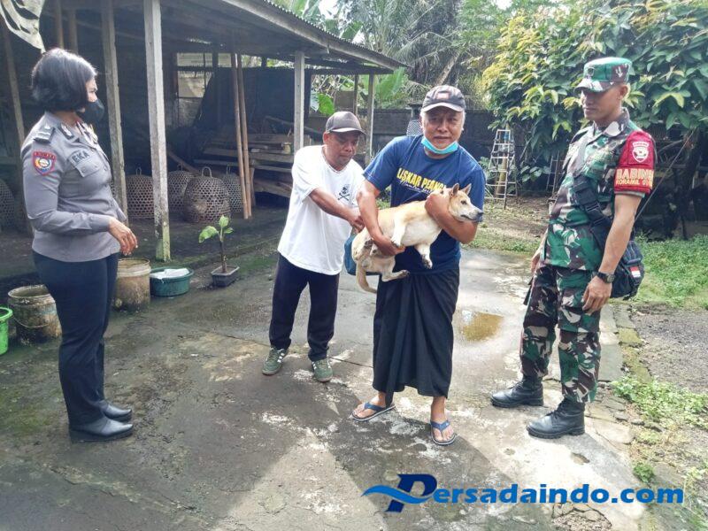Bangli – Dalam rangka mendukung program kesehatan hewan dari Dinas Pertanian, Ketahanan Pangan dan Perikanan (PKP) Kabupaten Bangli, Babinsa Kelurahan Kawan, Koramil 01/Bangli, Kodim 1626/Bangli, Sertu Wayan Budiarta, melaksanakan pendampingan kegiatan vaksinasi rabies yang berlangsung di Lingkungan Tegalalang, Kelurahan Kawan, Kecamatan Bangli, Senin (07/7/25).