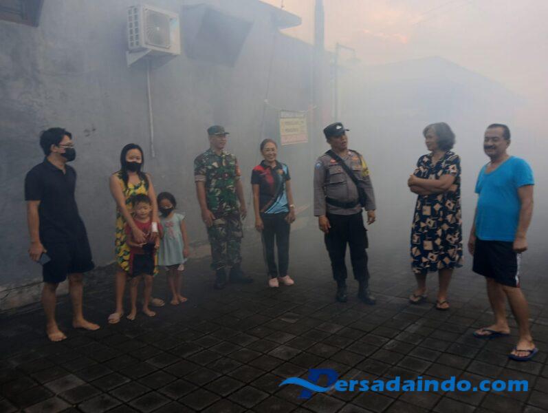 KARANGASEM – Babinsa Kelurahan Padangkerta Koramil 1623-01/Karangasem Peltu I Wayan Sumadra melaksanakan pendampingan kegiatan fogging, di RT 7 Anggrek 12 Perumnas Lingk. Kertasari Kel. Padangkerta Kec/Kab Karangasem, pada Selasa (08/07/25).