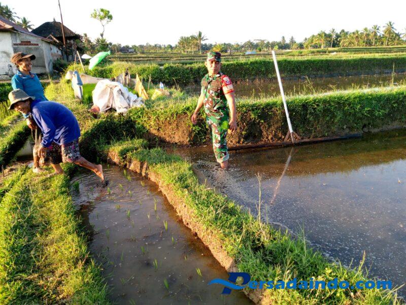 Dalam rangka mendukung Program Ketahanan Pangan Nasional, Babinsa Desa Kelusa Koramil 1616-07/Payangan, Serma I Wayan Yasa, menunjukkan peran aktifnya dengan mendukung kegiatan penanaman padi varietas Impari 32. Penanaman ini dilaksanakan di lahan seluas 48 are milik petani I Gusti Putu Balik, yang berlokasi di Subak Yehtengah, Desa Kelusa, Kecamatan Payangan, Kabupaten Gianyar.